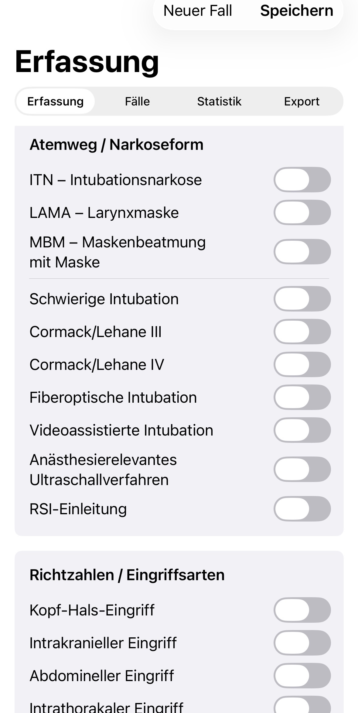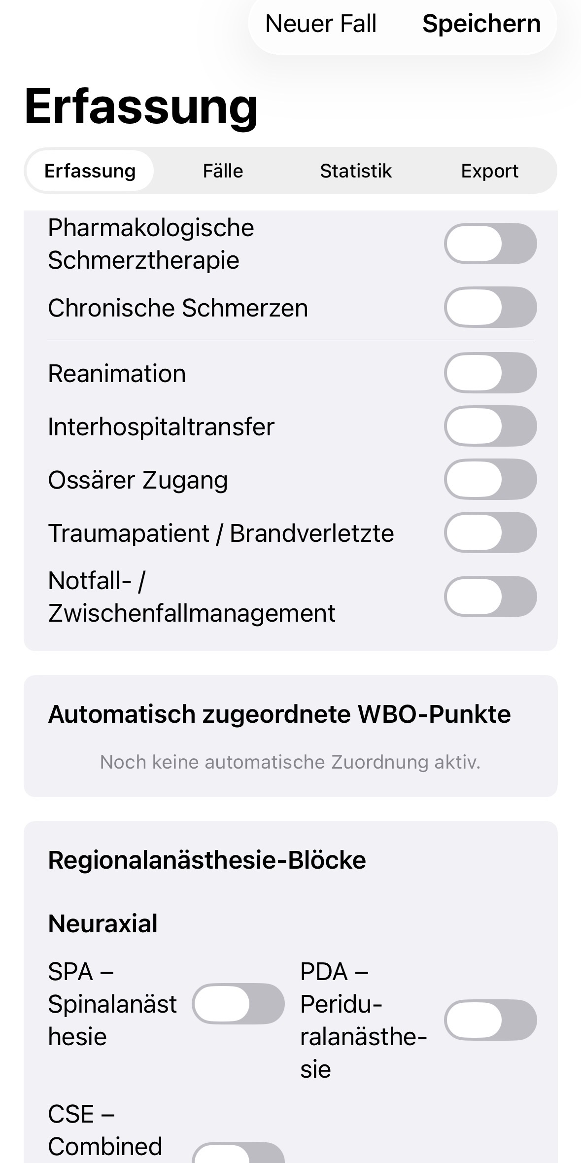 Integrieren Sie spezifische Informationen wie ASA-Klassifikationen und anästhesiologische Verfahren mühelos in jeden einzelnen Datensatz.